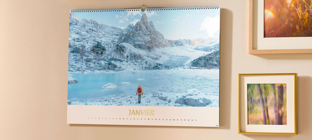 Concevez un calendrier photo mural A3 paysage 100% personnalisé et revivez le souvenir d'un moment heureux, mois après mois !